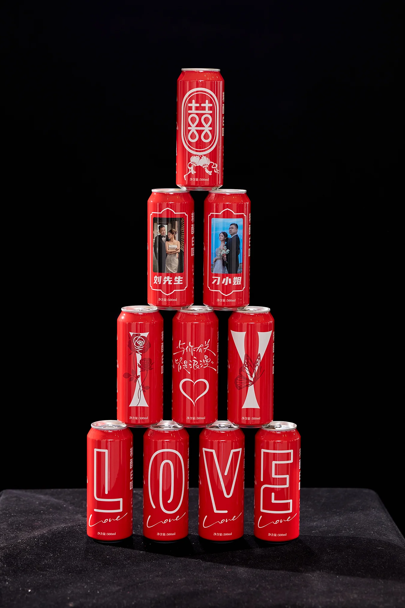 突破传统包装 “功能性容器” 的定位,通 过 “色彩(氛围)+ 结构(平衡)+ 定制 (专属)” 的三重设计,将啤酒包装转化 为 “婚礼叙事的媒介”